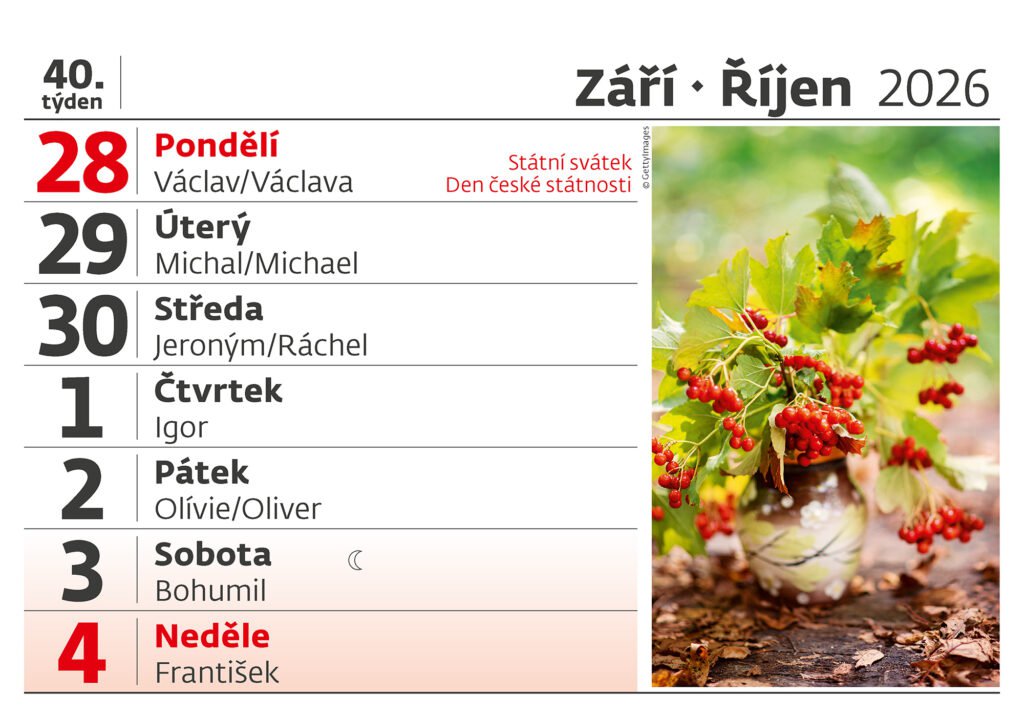 Čitelný týdenní kalendář 2026Vyrobeno v ČR
