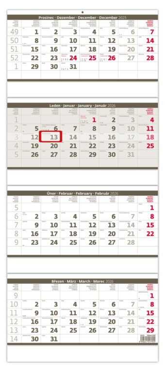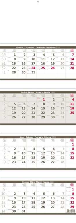 Čtyřměsíční skládaný kalendář šedý 2026Vyrobeno v ČR
