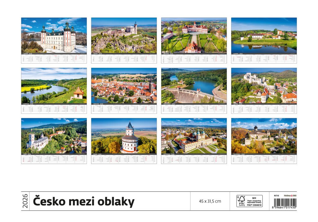 Kalendář Česko mezi oblaky 2026Vyrobeno v ČR