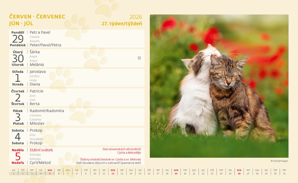 Stolní kalendář Kočky 2026Vyrobeno v ČR