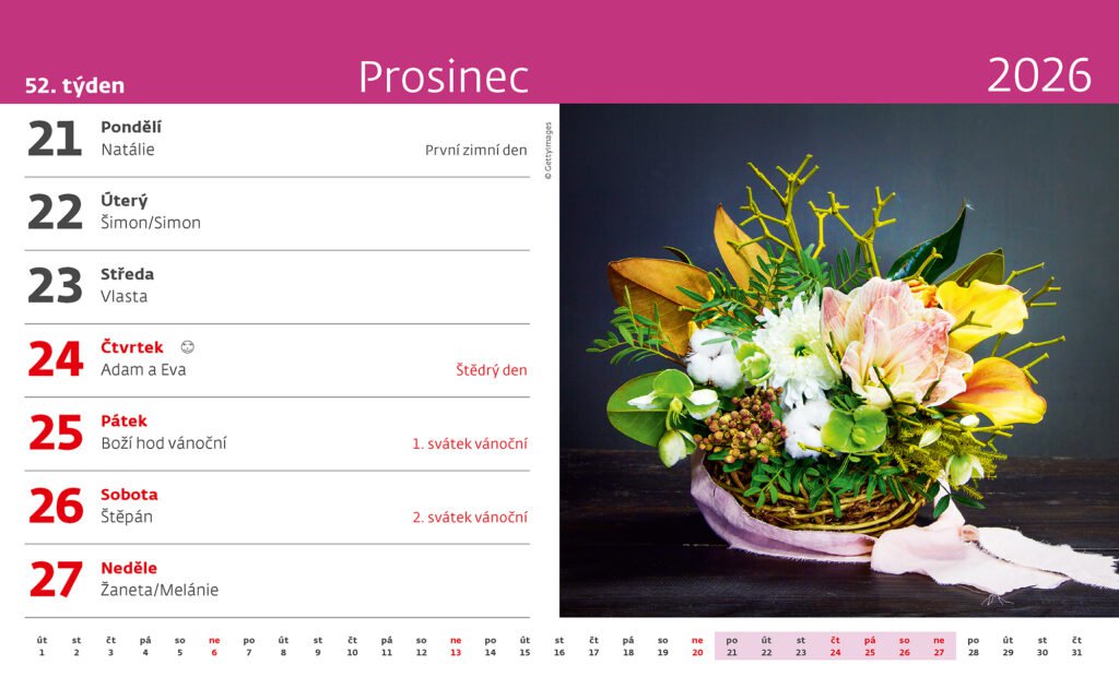 Kalendář Květiny 2026Vyrobeno v ČR