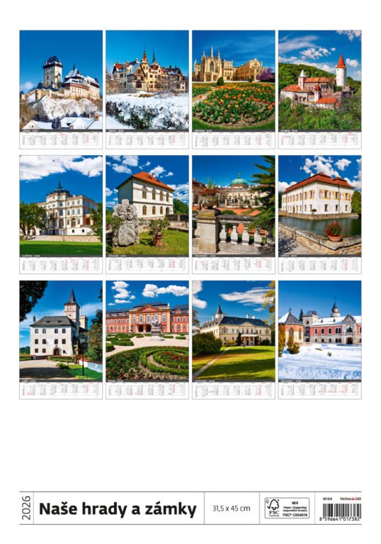 Kalendář Naše hrady a zámky 2026Vyrobeno v ČR