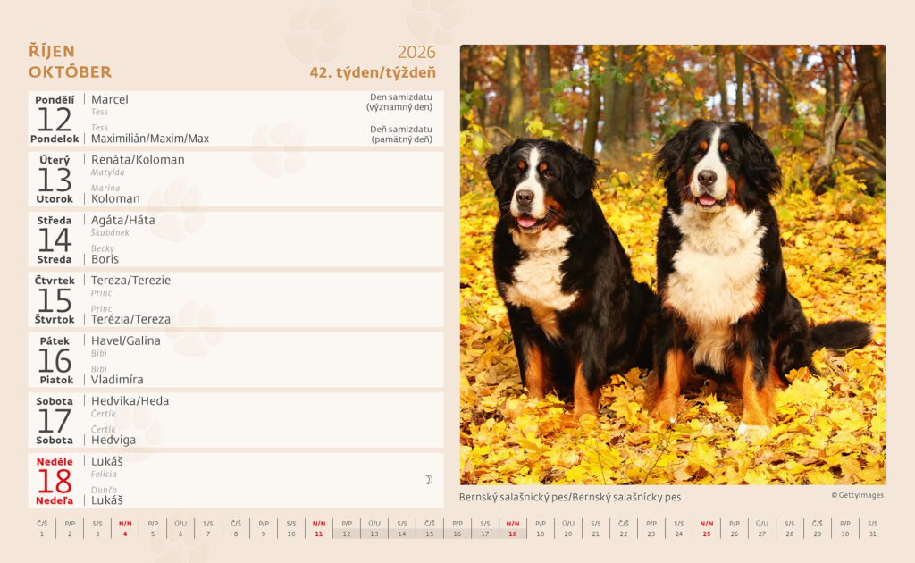 Stolní kalendář Pejskové 2026Vyrobeno v ČR