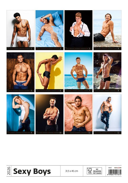 Nástěnný kalendář Sexy Boys 2026Vyrobeno v ČR