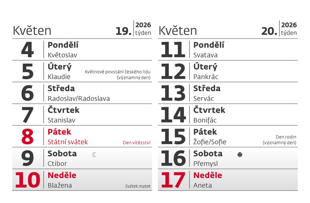 Plánovací MINI 14denní kalendář 2026Vyrobeno v ČR