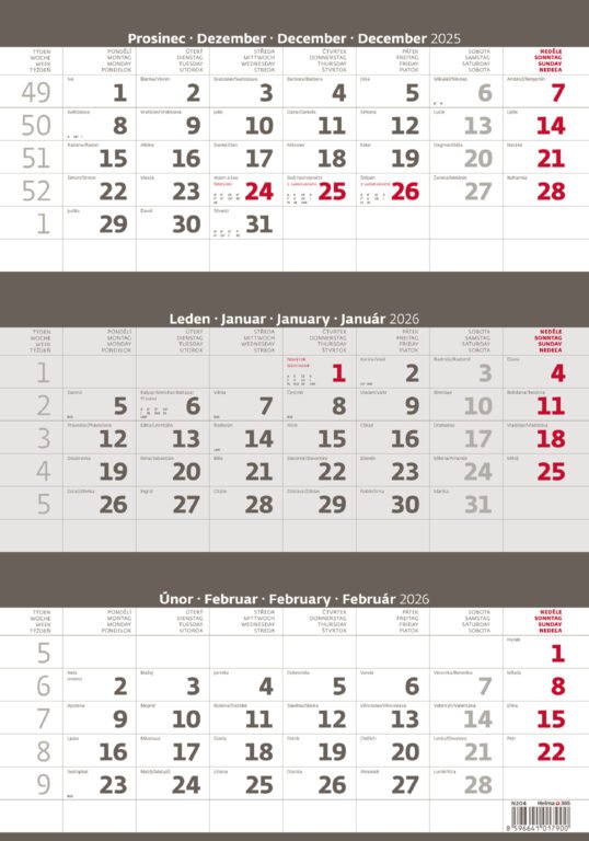 Tříměsíční kalendář šedý 2026Vyrobeno v ČR