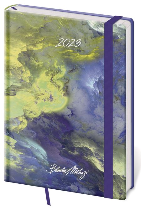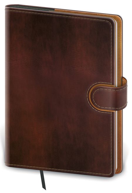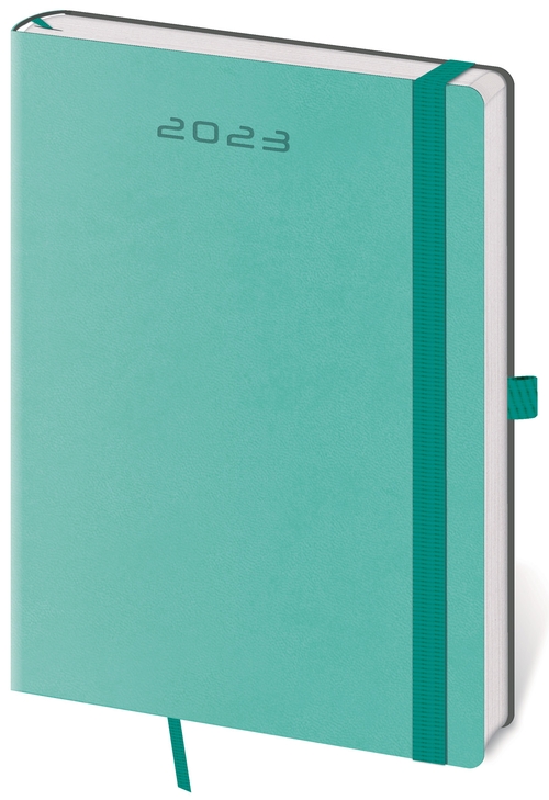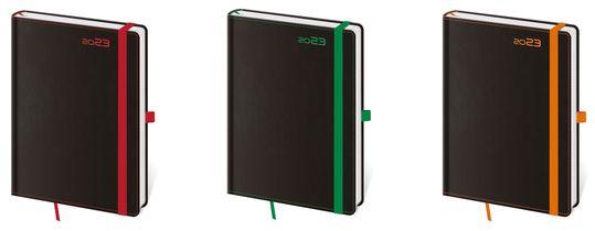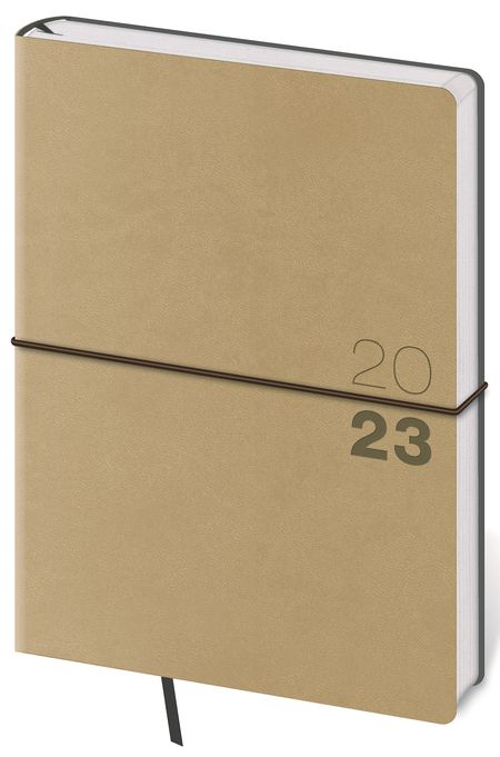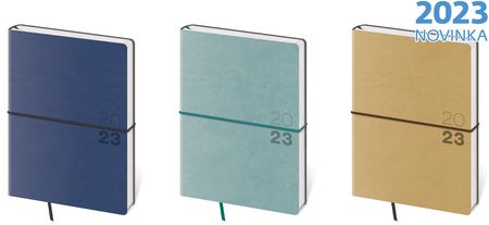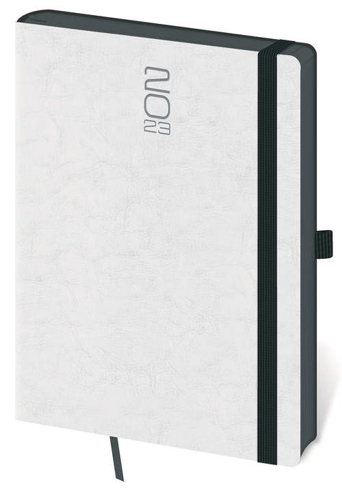 Moderní diář v měkké ohebné vazbě s kulatou příčnou gumičkou přes hřbet představuje nejnovější způsob zpracování. Diář je příjemný do ruky díky matné kožence a lehký díky měkkým deskám.