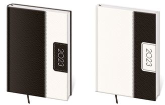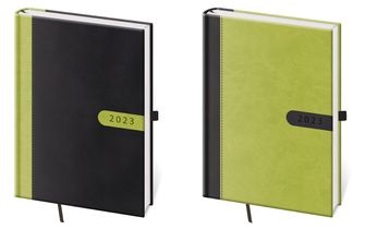Desky diářů Bora jsou kombinací dvou barev matného materiálu Vivella, který je velmi příjemný na dotek.