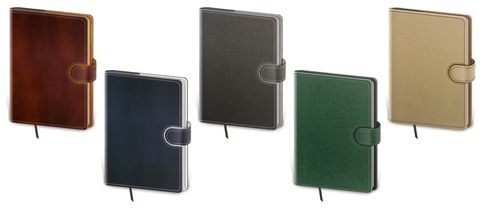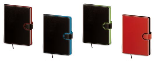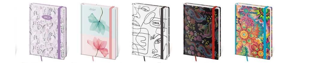 Představujeme moderní typ diářů s vyměnitelnými deskami a variabilním obsahem. Praktické desky jsou vybaveny poutkem na tužku, magnetickou uzavírací klopou a jejich okraj ozdobí obšití nití. Desky je možno použít opakovaně pro zápisníky i diáře, proto neobsahují ražbu letopočtu.