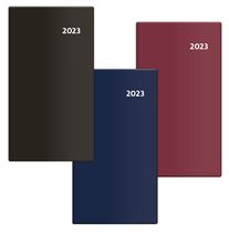 Tradiční celoplastové provedení kapesních diářů. Barevná paleta zahrnuje tři klasické odstíny.